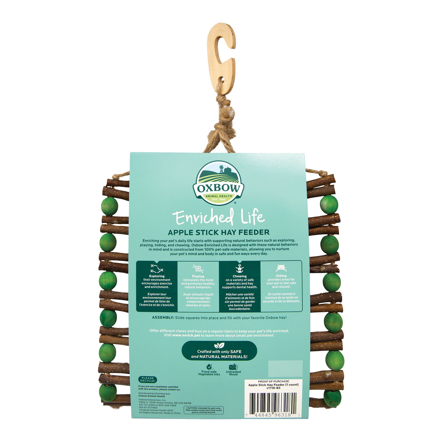 • Oxbow Enriched Life est conçu avec ces comportements naturels à l’esprit et est construit à partir de matériaux 100% sans danger pour les animaux de compagnie, vous permettant de nourrir l’esprit et le corps de votre animal de manière sûre et amusante tous les jours.