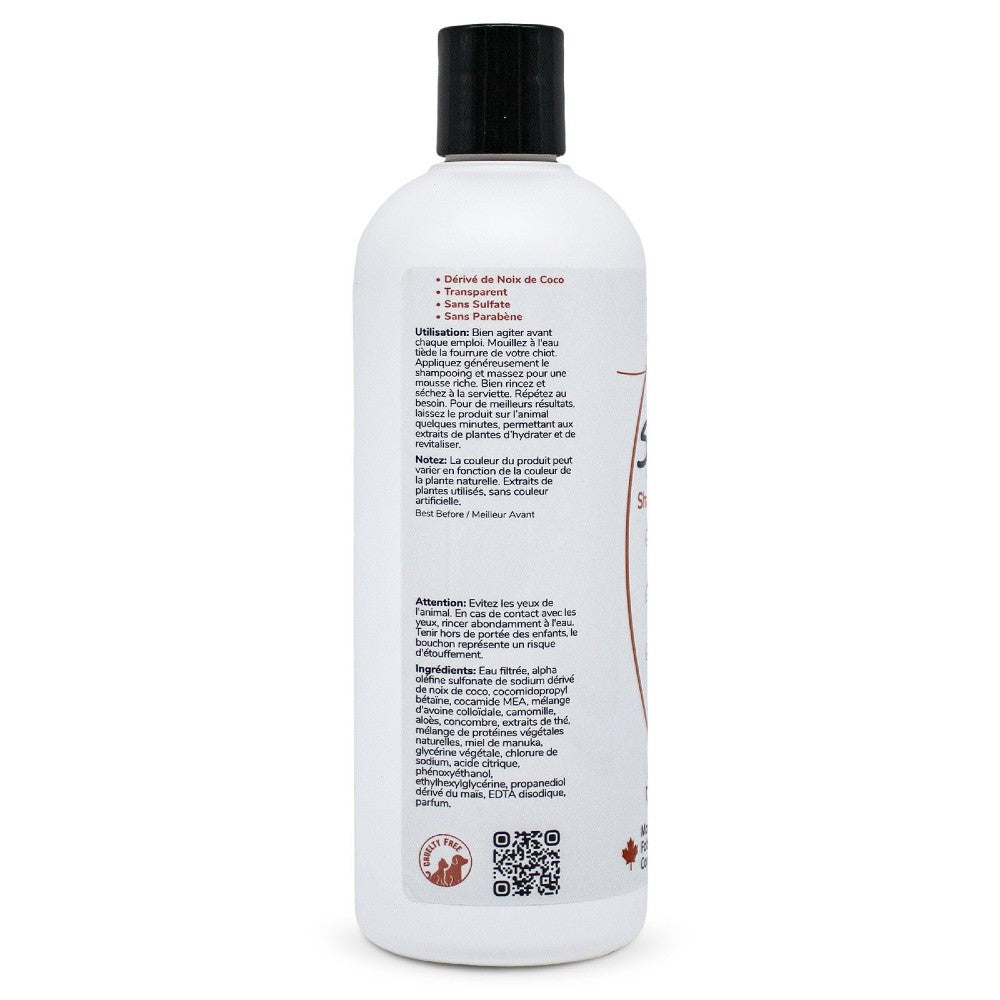 - Le shampoing pour chiot au miel et à l'avoine est doux et apaisant, parfait pour la peau sensible des chiots.
